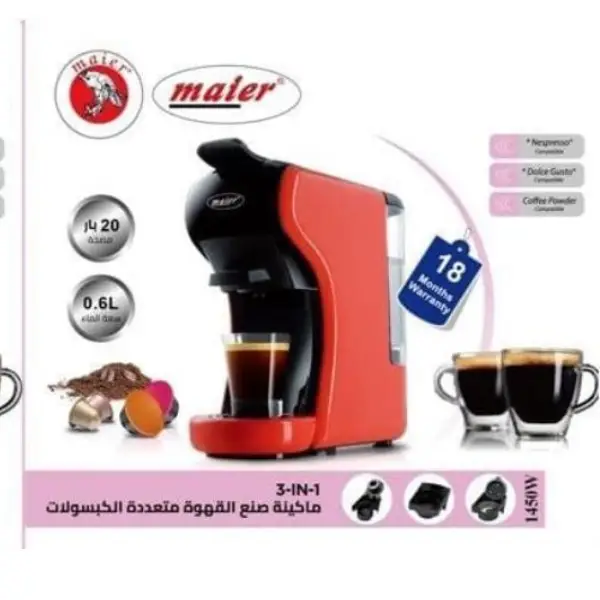 4,100,000 توماناسپر سو ساز مایرMR-101 دارای فیلتر اب فشار بخار 20 بار دارای سینی چکه گیر قابلیت درست کردن اسپر سو،کاپو چینو،نسپرسو، دولچه گوستو، قهوه حالت اماده به کار 15 دقیقه جنس بدنه پلاستیک دارای نشانگر اب ارائه دهنده بانه پیک