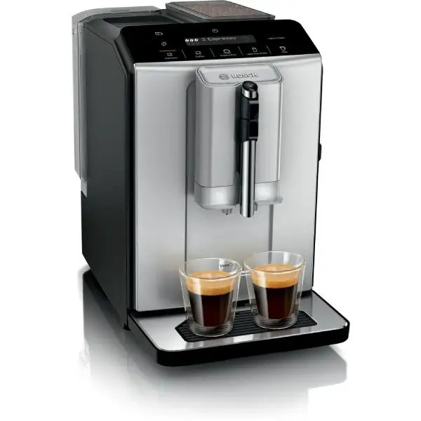 23,300,000 توماناسپر سو ساز بوش TIE20504 Series 2 Fully automatic coffee machine VeroCafe Diamond titanium metallic کشور سازنده آلمان منتاژ اسلوونی با رنگ سیلیور جنس بدنه استیل و پلاستیک دارای مخزن قهوه صفحه کنترل لمسی دارای اسیاب قهوه خاموش کردن خودکار فنجان های اماده سازی 1و 2 قتابلیت تولید کف شیر ارائه دهنده بانه پیک