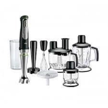 نوع سیستم:4کاره(گوشت کوب،خردکن،همزن،آسیاب) توان مصرفی:850 وات حجم ظرف خردکن:650میلی لیتر جنس تیغه:دارای تیغه 2پره،استیل ضدزنگ جنس میله:استیل ضدزنگ رنگ:مشکی-استیل -