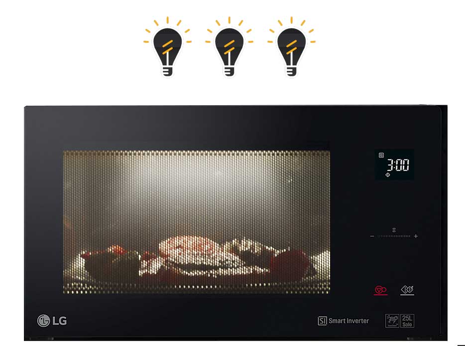 مایکروویو ال جی MH8265CIS برای تامین روشنایی داخلی از 3 عدد لامپ led بهره گرفته است . این لامپها که از نوع led هستند نسبت به لامپهای معمولی دارای روشنایی بیشتری بوده و به میزان 2.5 برابر روشنایی بیشتری تولید می کنند و همچنین نسبت به سایر لامپ ها طول عمر بالاتری هم دارند . گفتنی است که میزان حرارت تولید شده توسط لامپ های led به مراتب کمتر از دیگر لامپ ها بوده و همچنین میزان مصرف انرژی پایینتری هم دراند . حال که از بابت روشنایی داخل مایکروویو خیالتان راحت شد ، نوبت به قابلیت ها و کارکردهای متفاوت این مایکروویو می رسد . مایکروویو ال جی مدل MH8265CIS 4 کارکرد متفاوت و کارببردی دارد ، که شامل گرم کردن ، سرخ کردن ، تولید حرارت و مایکروویو را دارد . همچنین این مایکروویو کم مصرف با کمترین میزان برق و انرژی روشن شده و شروع به کار می کند . می دانید که بسیار از دستگاه های برقی با ولتاژ پایین برق نمی توانند کار کنند و روشن نمی شوند ، اما مایکروویو 42 لیتری ال جی MH8265CIS قابلیت کار کردن و روشن شدن در ولتاژ پایین برق را نیز دارد ( مایکروویو MH8265CIS با ولتاژ 300 وات نیز روشن خواهد شد ) .